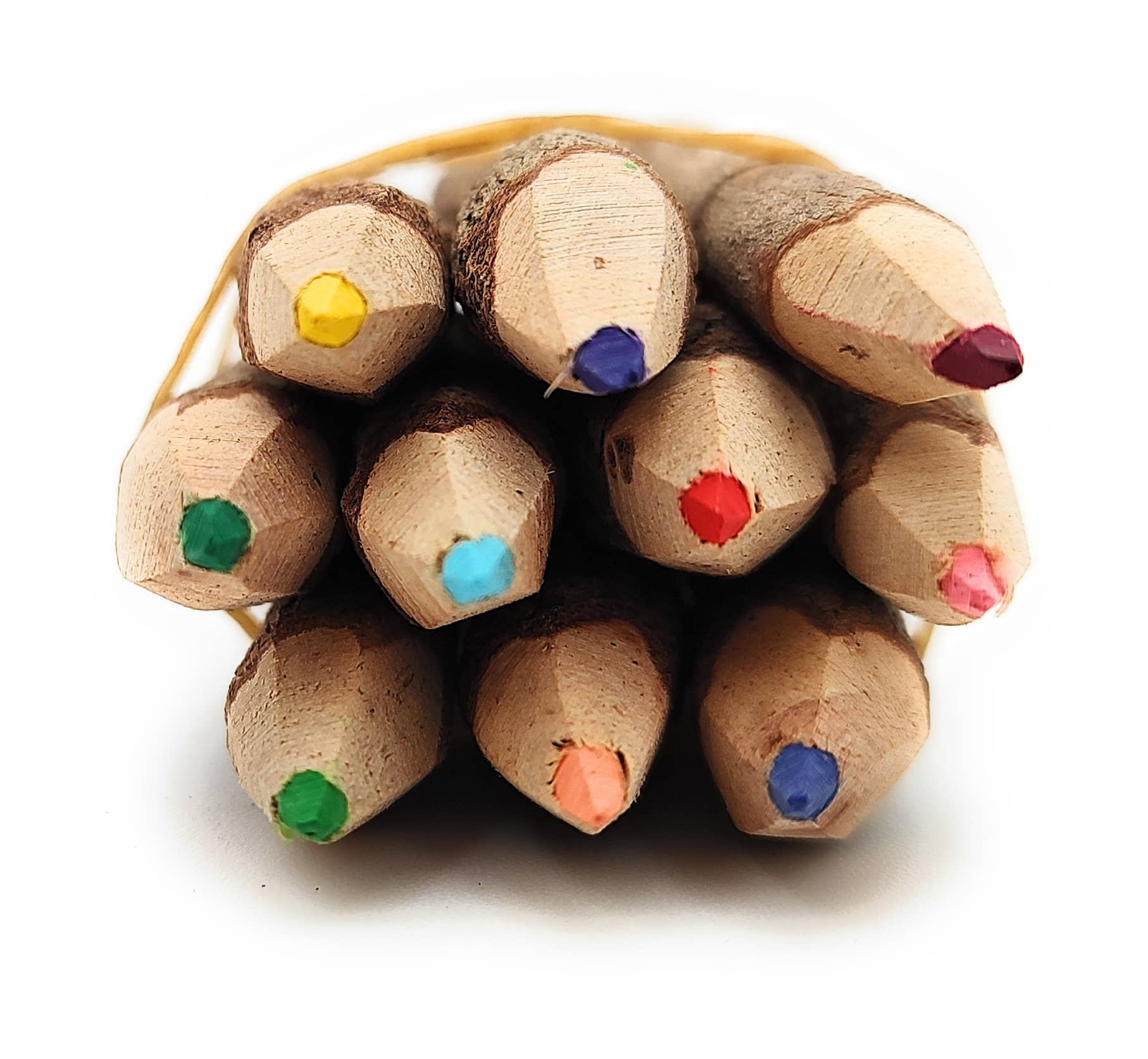 Our 3.5" color Jungle Vine Stick Pencils are also known as Branch Pencils and come in bundles of 10 assorted colors. These eco-friendly pencils are made from trimming branches off of Tamarind trees which regrow each season. While these bundles of pencils are best used as a decorative novelty, they can be used and sharpened by whittling with a sharp blade. Approximate size: 1.25" x 1.25" x 3.5" Approximate weight: 2 oz.