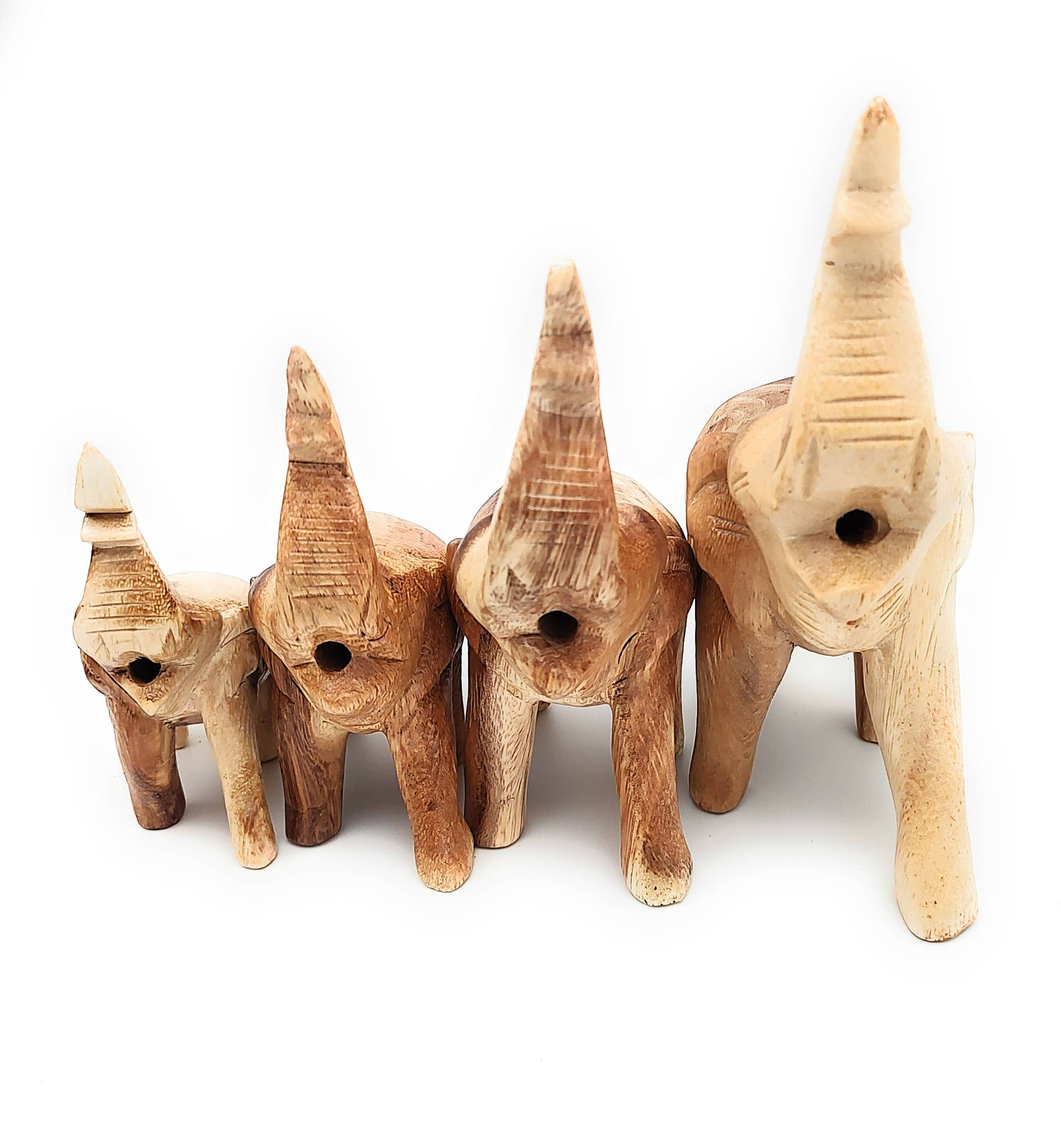 Our 5 inch clear waxed Trumpeting Elephant is the largest of them all. Blow into its backside and it trumpet like a real Elephant! This large size is the most realistic of the bunch and it's trunk is up for good luck.