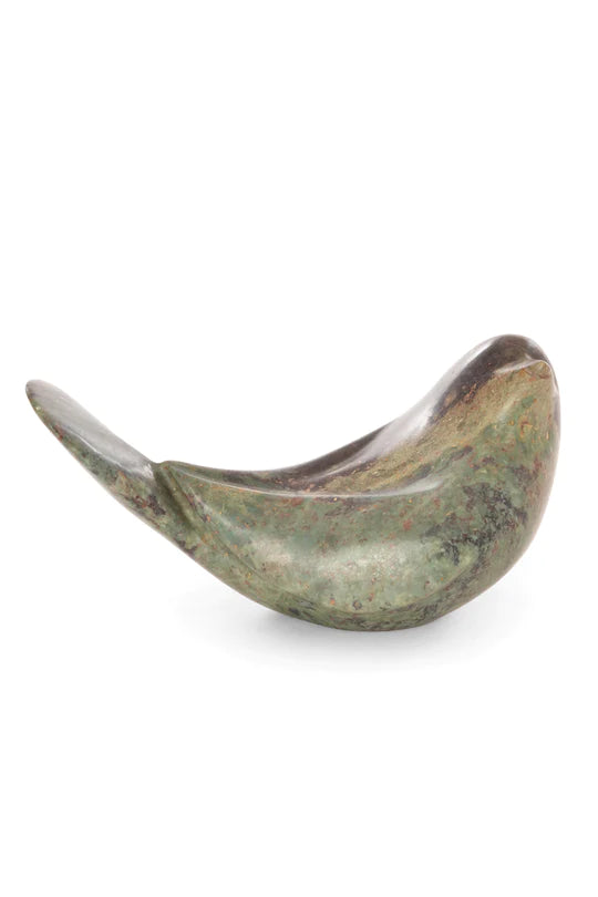A talented Zimbabwean sculptor hand carves serpentine stone to create beautiful abstract bird sculptures with graceful curving lines.