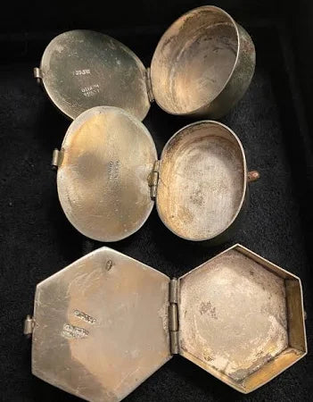 Approx. 2” inches wide. These collectible and hand smithed pillboxes are made in one of the world’s most recognized focal points for the creation of folk art, Taxco el Viejo, Guerrero Mexico.