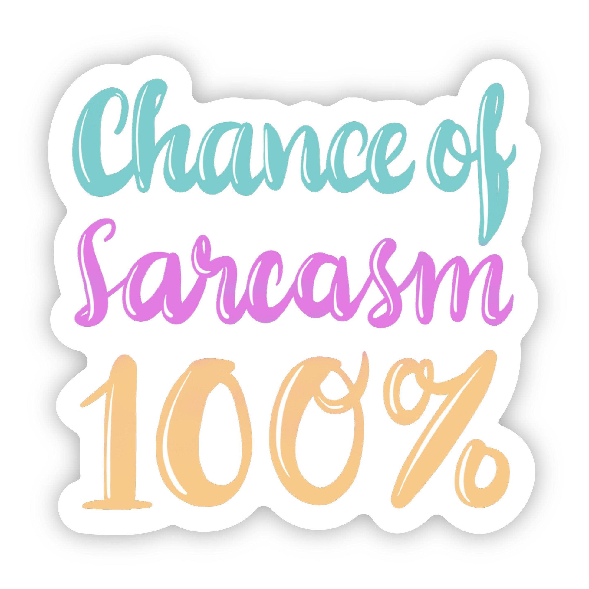 Chance of Sarcasm 100% Multicolor Sticker. Great to decorate water bottles, laptops, phone cases, coolers, car windows, journals, notebooks, planners, bikes, skateboards, kayaks, and more. This sticker is a part of our Meme and Mood Collection and is sure to display your sarcastic side!