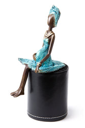 Talented metal workers in Burkina Faso handcraft this beautiful sculpture of an expectant mother using a lost wax casting method. The sculpture is designed to sit on a ledge and highlights the love a mother feels for her baby even before birth.