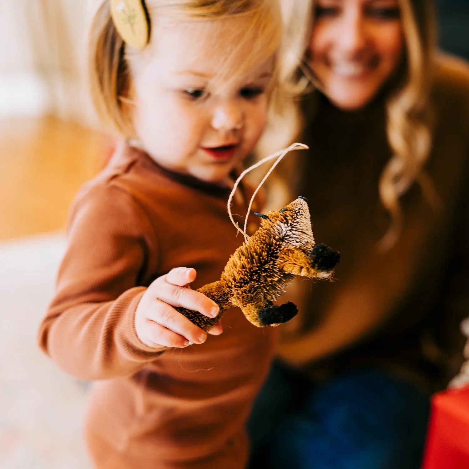 Handcrafted from escoba buri fiber by artisans in the Philippines, this woodland creature will feel right at home on your Christmas tree.