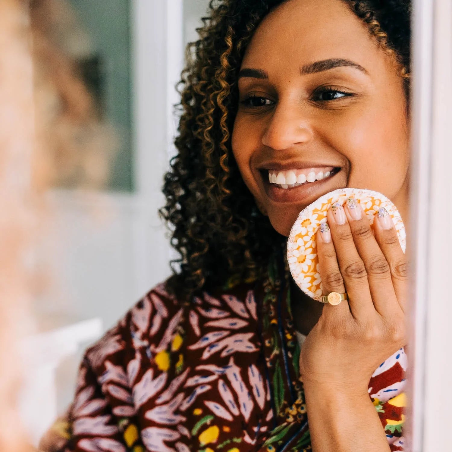 Take your self-care routine up a few sustainability notches by ditching single-use products for a set of Reusable Makeup Remover Rounds. Each set comes with 7 different rounds (one for each day of the week!), all made from AZO-free cotton deadstock fabrics from local textile mills. They are backed with cotton terrycloth for just the right amount of absorption. Due to the use of deadstock fabrics (fabric left over after garment production), each round and each set vary in color and pattern-each as unique as the women who made them.