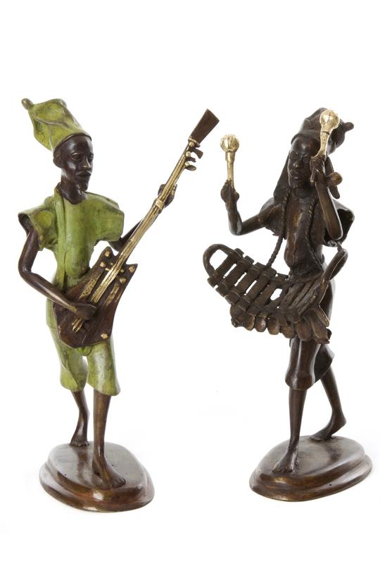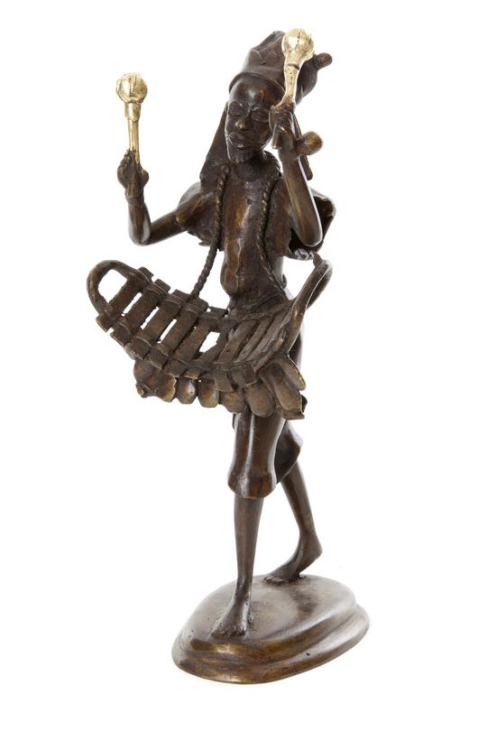 Metal sculptors in Burkina Faso use a lost-wax casting method to create beautiful works of modern African art. This stunning sculpture features a singing griot playing a balaphon. Across West Africa, griots utilized oral tradition to share history, praise, poetry and cultural norms through music, recitation and dance.