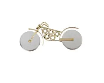 Fun stainless steel pizza cutter created by metalworkers in Moradabad, India. Great gift for a motorcyclist or for anyone who enjoys kitchen tools with some whimsy!