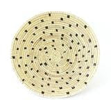 Wolof women in rural Senegal craft these vibrant baskets from cattail stalks and strips of plastic used in the production of outdoor mats. Weaving baskets allows the women of the household to contribute to the family's income while preserving traditional craft forms.