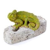 A small team of Kenyan ceramics artisans excel at fashioning functional art from clay. Their newest line of low-fired pottery pieces centers around chameleons, molded artfully in clay to bring a touch of Kenya's diverse natural world to the home. This decorative sculpture features a hand molded chameleon perched atop a textured piece of gray pumice.