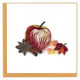 The smell of apple pie practically wafts off this handcrafted design. Our Quilled Autumn Apple card will have you dreaming of fall, as it shows a deep red apple with cinnamon and star anise, next to a few orange and yellow leaves.Don’t just send a card, send art!