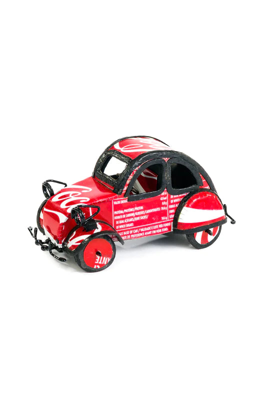 Senegalese artisans have quite an eye for the creative potential in discarded metal cans. Using recycled aluminum pop cans, artisans craft these fun car sculptures.
