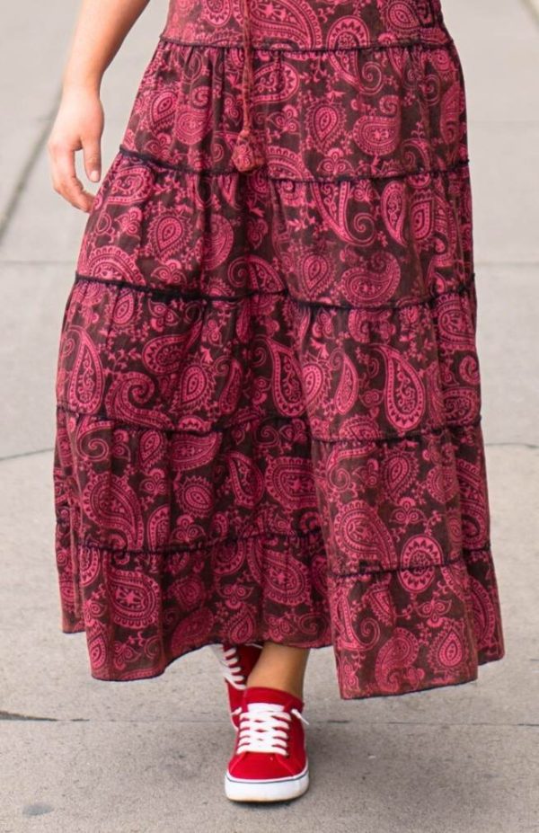 Women’s tiered maxi skirt, patterned
