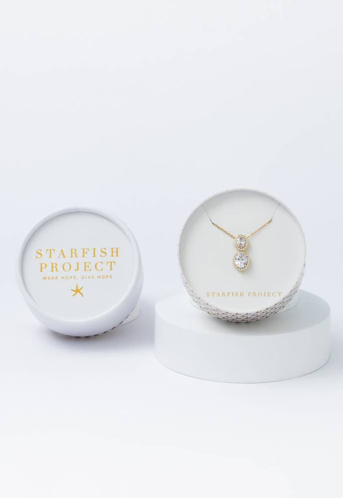 Divine Connection Gold and Zircon Necklace- 14K Gold Plated Dangle Formal Necklace