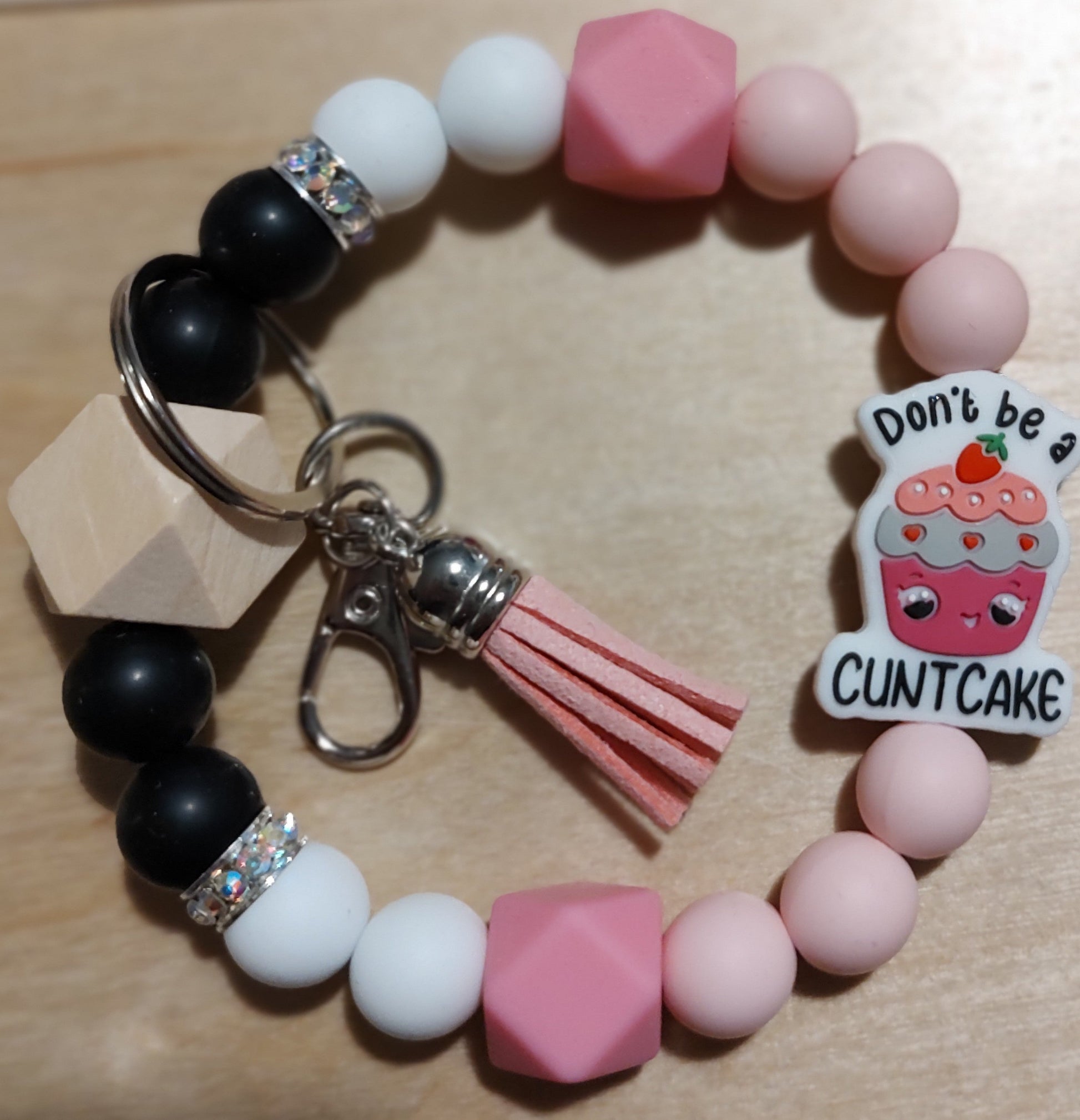 This is an elastic wristlet that comes with a key chain and clipΒ