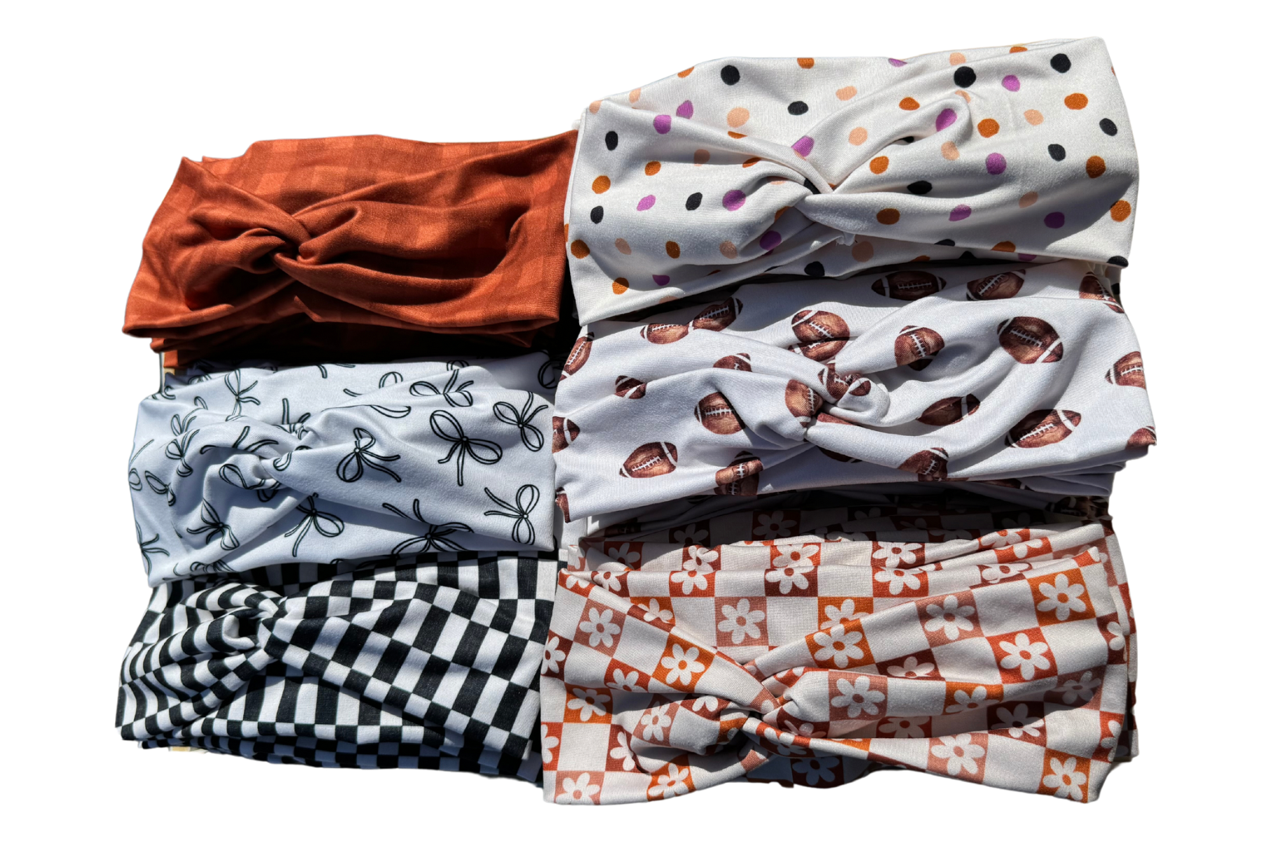 Hello, my name is Kayla and I make all the headbands myself. I started making headbands because I work in a factory and must wear a hard hat. The headbands are a fun way for me to express who I am and a way to prevent the plastic liner from rubbing my head. Then shortly after that, I started putting the twist in them so they won't slip off my head at the gym and the twist makes for a super cute and versatile way to wear them!