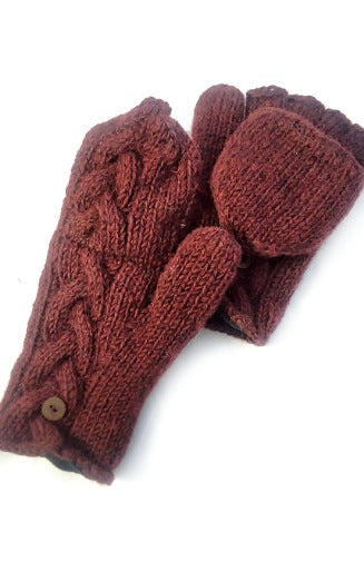 Wool fleece lined cable knit fingerless glove w/mitten pullover (glitten) , assorted colors & sizes.