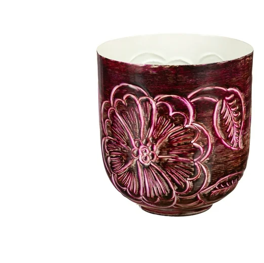 Flower Pot, Cranberry Finish Metal Large