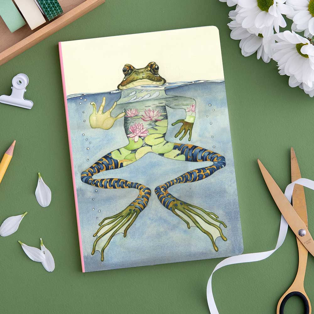 A5 perfect bound notebook. Frog.