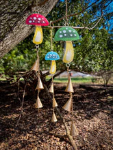 Add a splash of color to your home with these fabulously funky mushroom chimes! Red, blue, and green mushrooms chimes brings a touch of whimsy and magic to any space with their unique design and playful demeanor. Whether nestled among garden greens or hanging from a porch, these funky mushroom add a pop of color and character to your outdoor oasis. If used outdoors we recommend spraying with a clear coat to preserve color and longevity. SOLD individually
