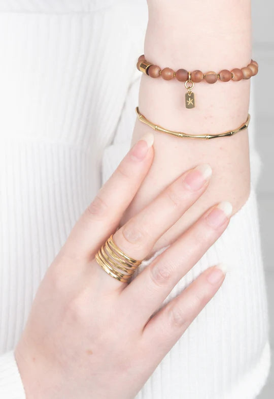 Meet the perfect combination of texture and shine in our survivor-created Glimmer Agate Bracelet. Crafted in glittering matte agate beads, hematite discs, and our classic starfish charm, you’ll wear this impactful piece everywhere! We love how the unique textures of the auburn-hued agate beads glitter and shine, showcasing the beauty within. Our new Glimmer Bracelet is great on its own yet ideal for mixing, matching, and stacking! Your purchase of the Glimmer Beaded Bracelets supports survivors in developing a sustainable life of freedom at Starfish Project. Thank you!