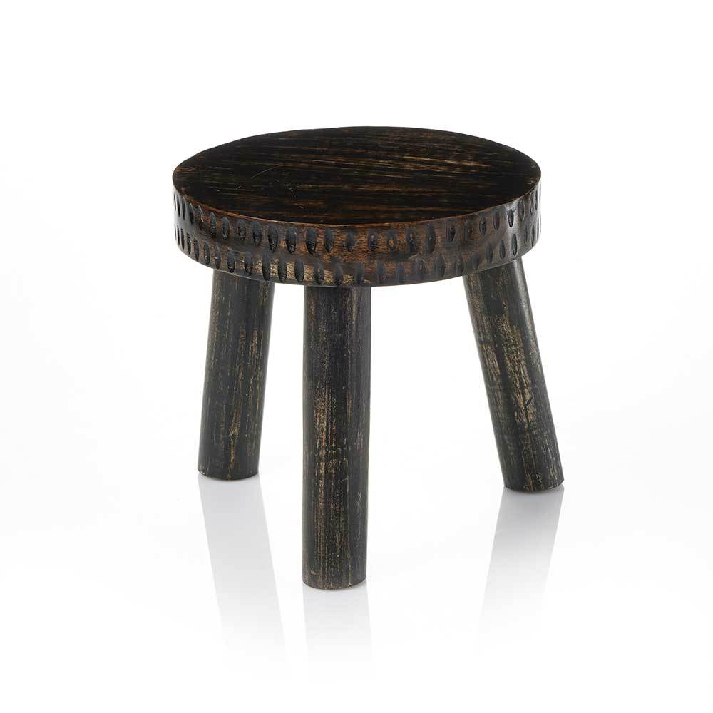 This plant stand features a beautiful hand-carved texture, sourced from sustainably-harvested mango trees. The unique design is hand-carved into the edge for a natural look. Stand has three removable legs for easy storage. Planter sold separately. 8 1/4"h x 8" dia
