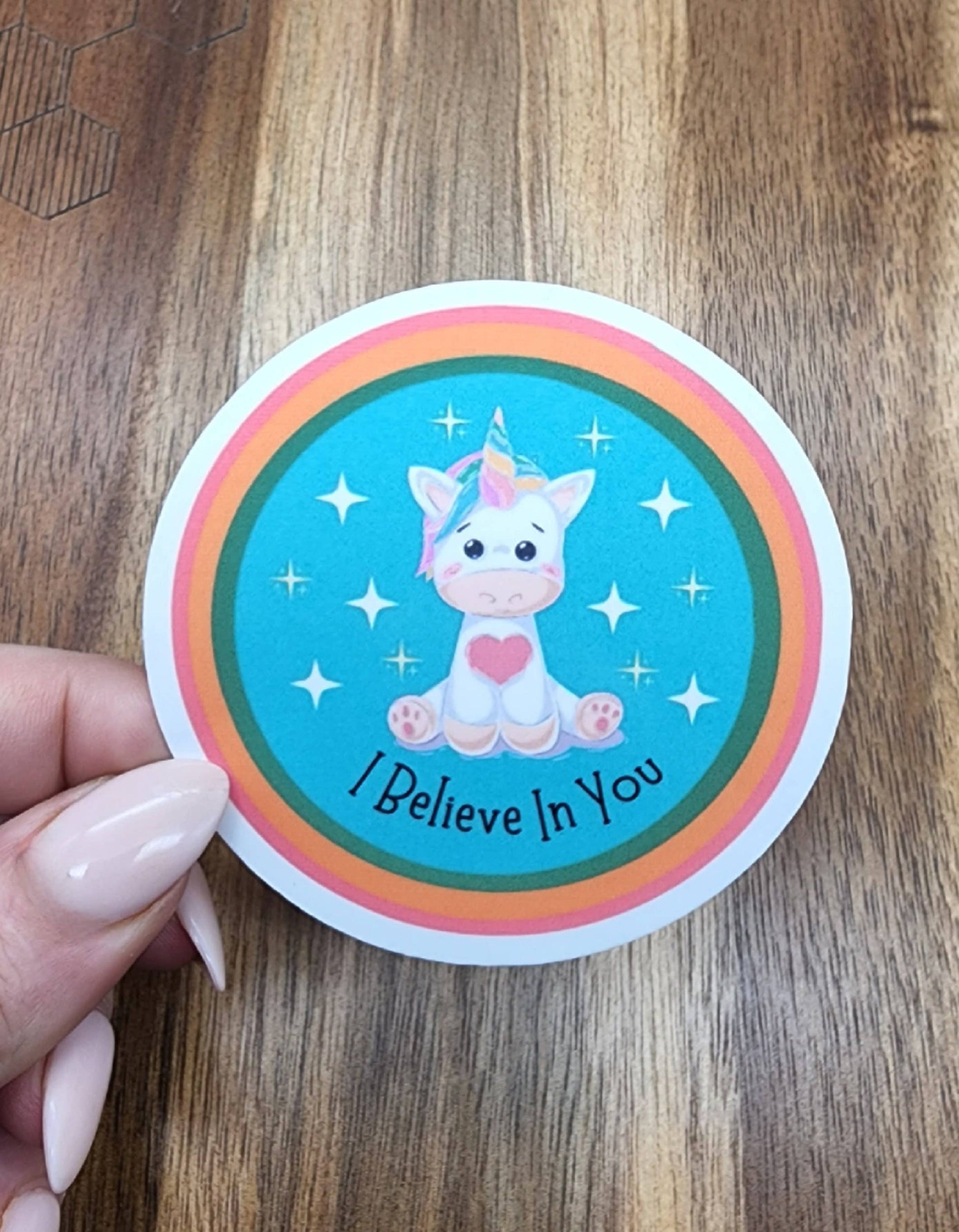 I Believe in You Sticker | Motivational | Positive Sticker | Self Care Sticker | Uplifting Sticker | Mental Health | Pun | Unicorn Sticker