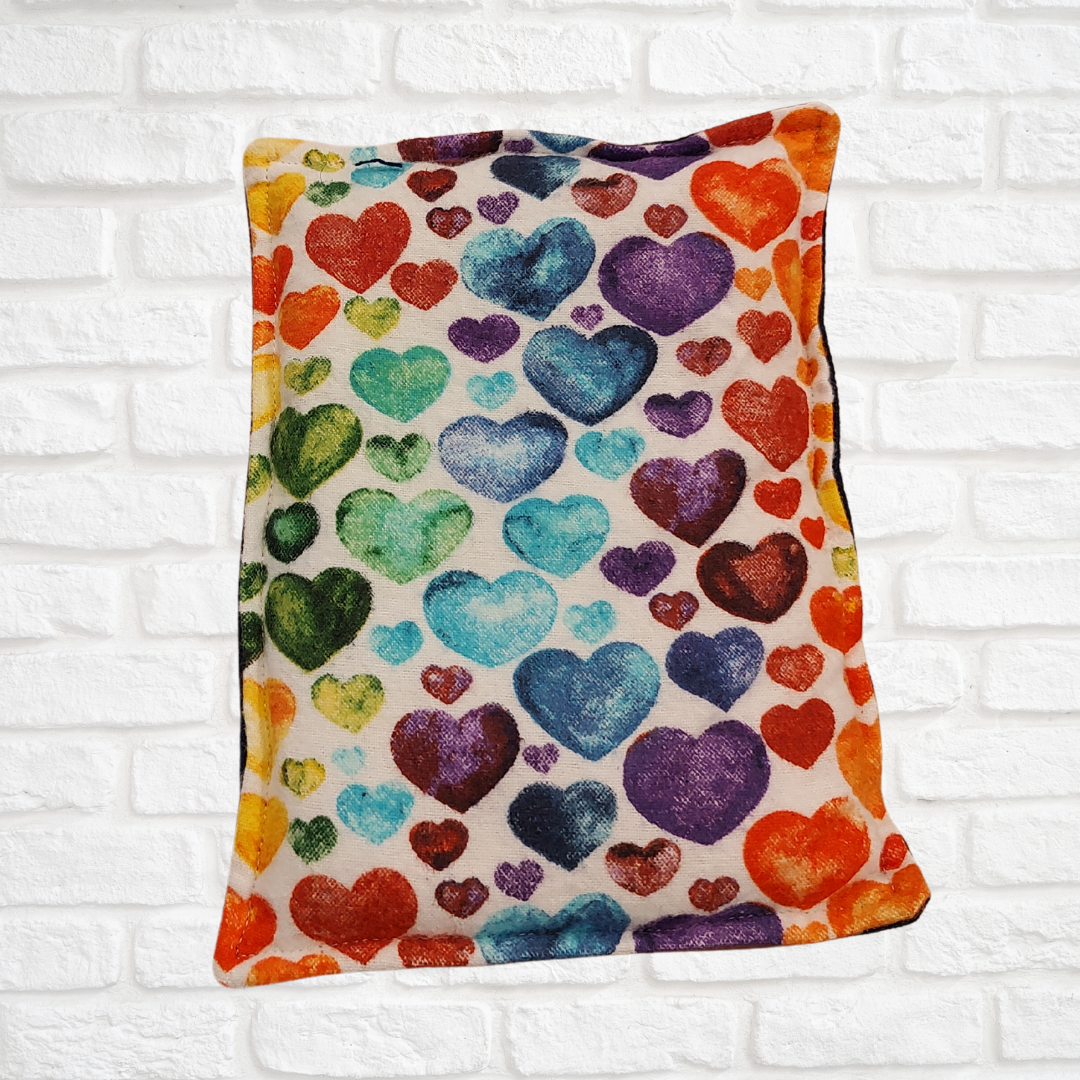 The Boo Boo bag is approximately 4 by 6 inches and filled with long grain 🌾 rice. They can be kept in the freezer or heated up in the microwave for one minute to help with all aches and pains.