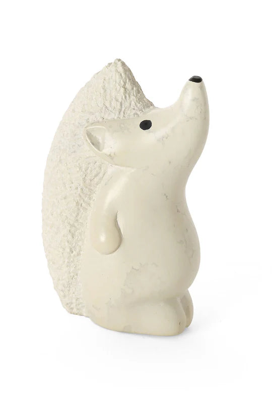 Kenyan artisans hand carve this adorable hedgehog sculpture from all-natural, un-dyed soft soapstone. Textured stone implies the hedgehog's spines and adds an interesting touch of contrast.