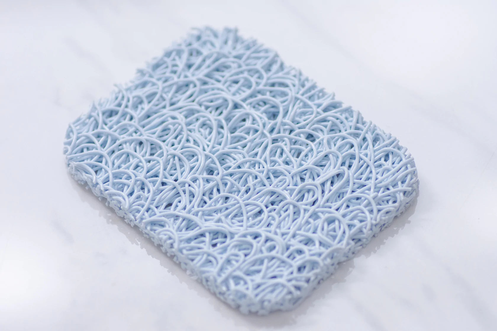 Designed using multi-directional bioplastic (made using materials such as corn starch and recycled plastics), allowing water to drain and air to circulate. It can be used in your existing soap dishes, shower shelves or countertops.
