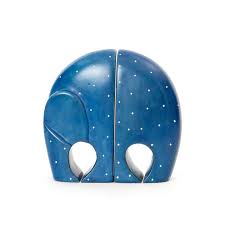 Our fun blue polka dot soapstone bookends are hand carved from soft soapstone by Gusii artisans in western Kenya. The calming blue finish is added by Nairobi artisans.