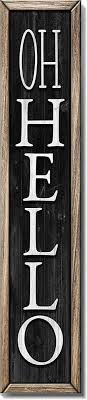 Welcome guests with warmth and charm using this delightful porch leaner. Standing 40 inches tall and 8 inches wide, it's the perfect size for entryways, patios, or any space needing a friendly greeting. Crafted from durable, weatherproof materials, this "Oh Hello" sign transitions seamlessly between indoor and outdoor settings. Display it leaning against your porch or hang it on the wall—versatility meets style. Make a memorable first impression that reflects your welcoming spirit.