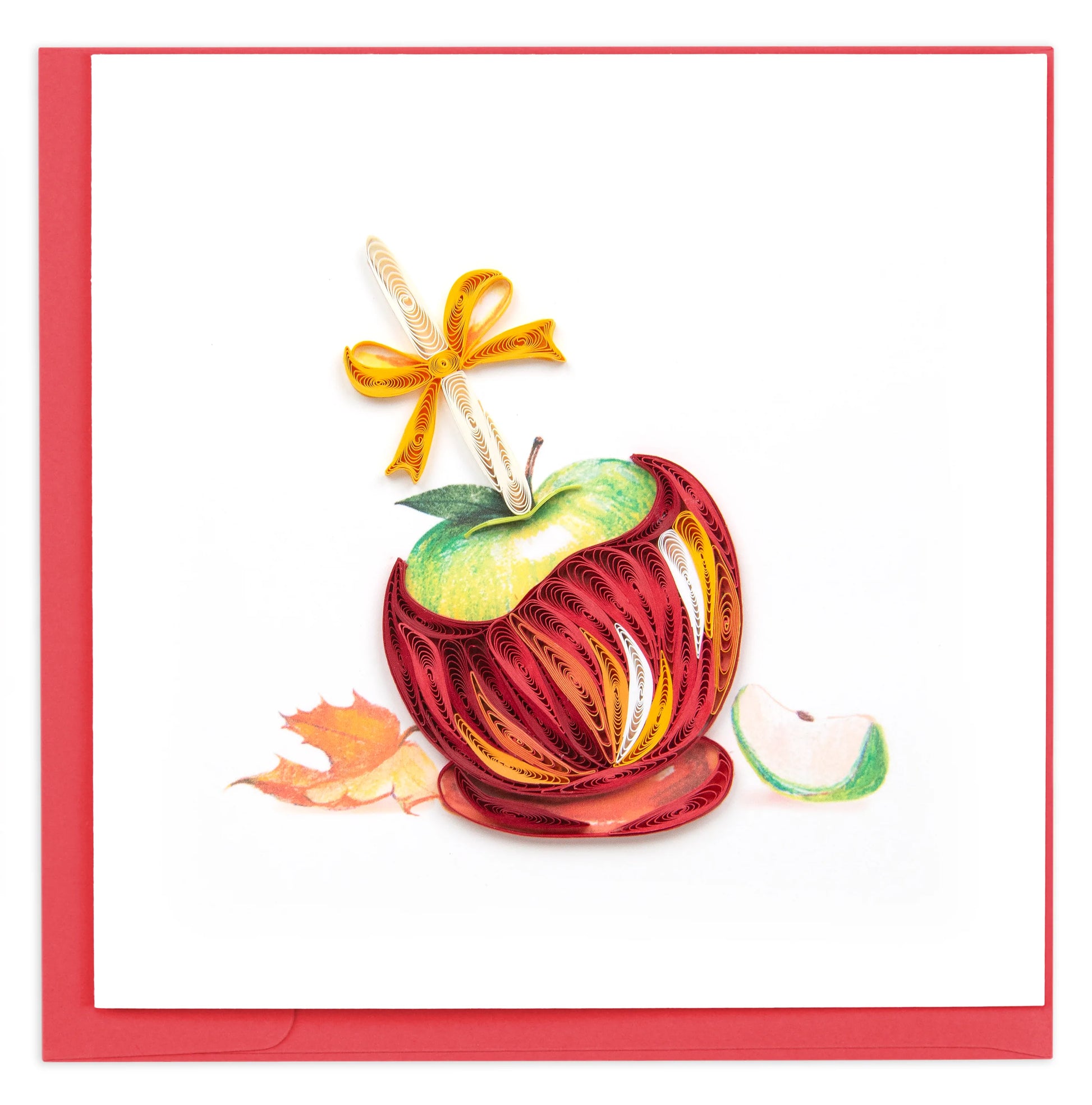 A perfect design for a friend or loved one, choose the Quilled Candy Apple to send a friendly message or for a special occasion. A quilled red candy apple on a stick with an orange bow and an apple slice and leaf adorn the front of this card.