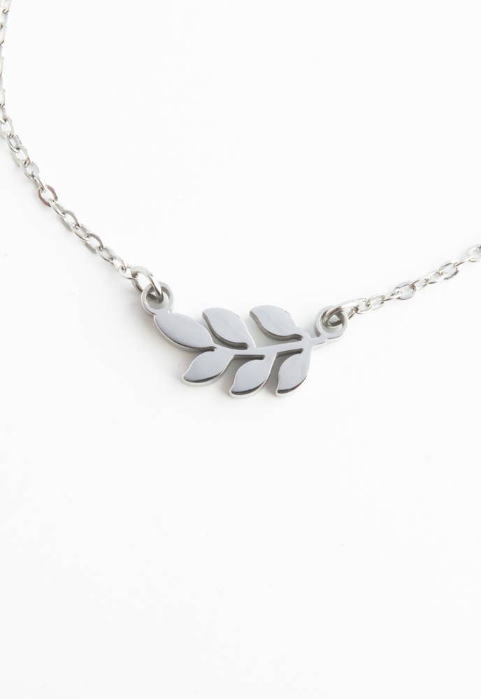 Rowen Leaf Necklace in Silver