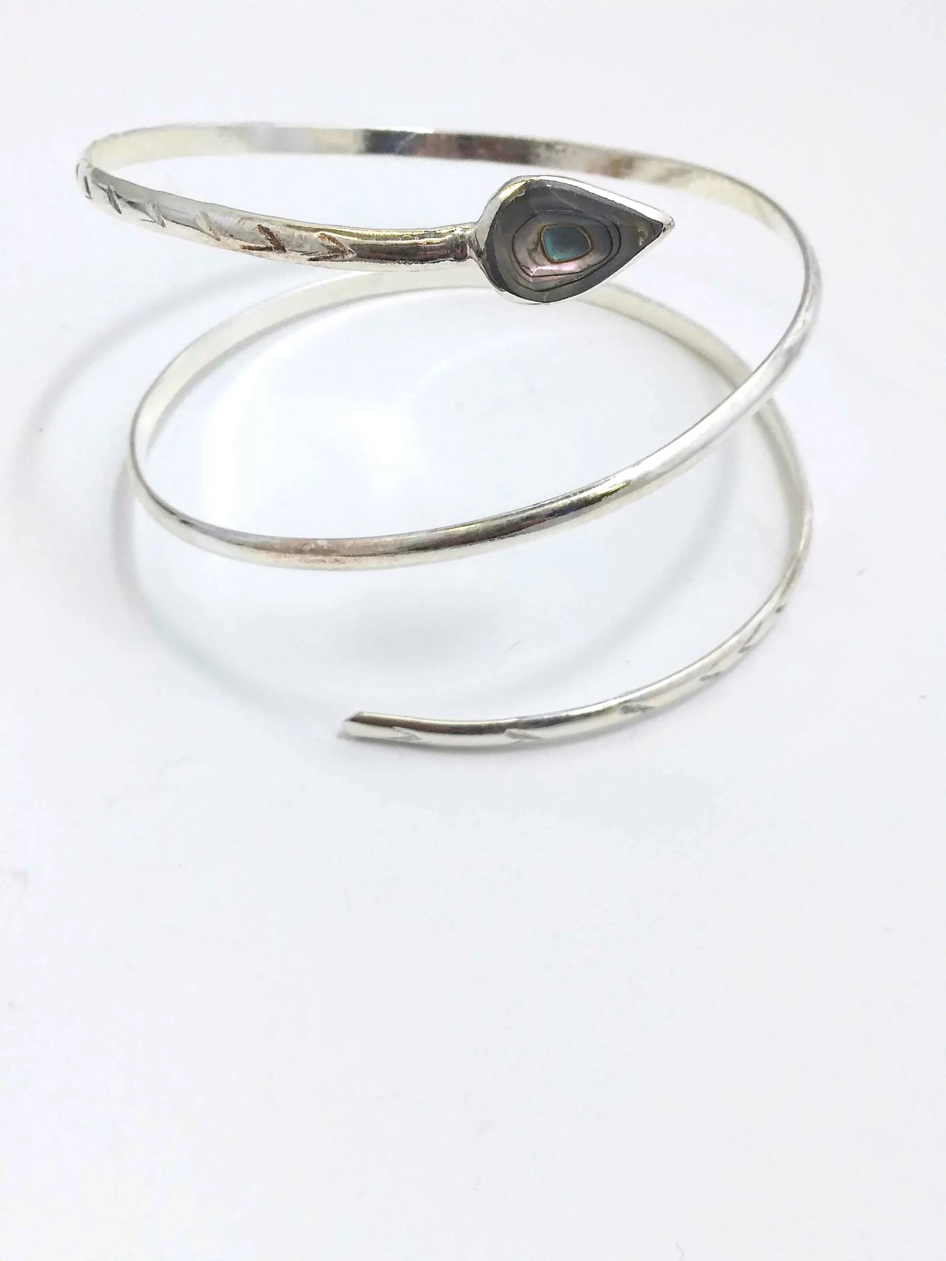 Bracelet Serpent Upper Arm Silver Inlaid Abalone