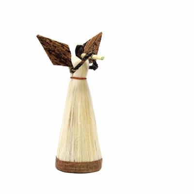 Kenyan artisans use readily available materials like sisal, banana fiber and recycled aluminum to create a beautiful angel ornament. The addition of lustrous recycled aluminum adds beautiful contrast to rustic banana and sisal fibers.