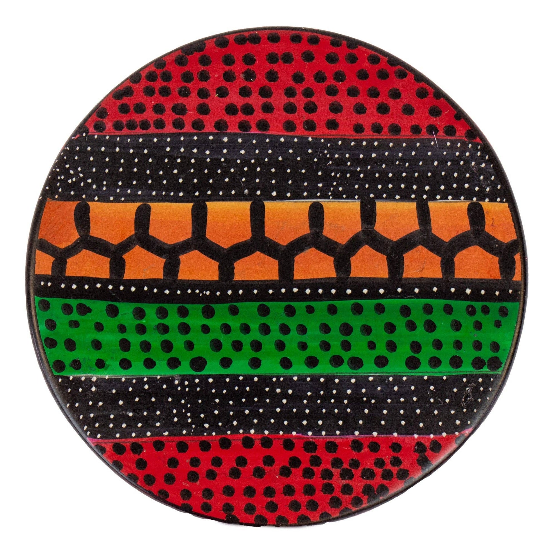 This vibrant Holy Family Creche nativity scene is a vibrant and celebrates the bright colors typical of many Kenya art pieces. Each holy character is carved from a single piece of natural stone and sit on a carved base. This is the perfect nativity for a small or large space. Product Features: * Measurements: Joseph is approximately 4 inches tall, the base is approximately 4 inch in diameter. * Set of 3 plus base. * Due to the handmade nature, actual size of each piece will vary slightly. * Soapstone is a soft stone, making it easy to carve into many forms. Handle with care to avoid breakage. * Fair Trade. Because a variety of communities carve the statue, expect designs variations and color variation in the natural stone.