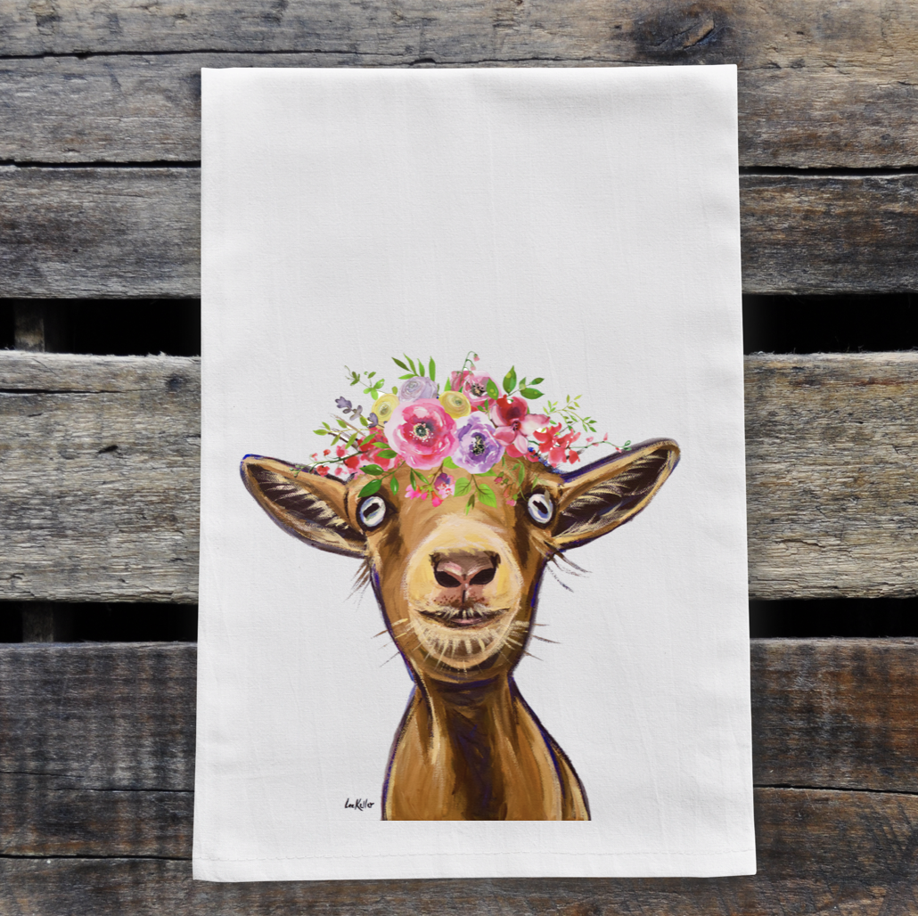 Spring Flower Goat Tea Towel, Farm Animal Towel Decor