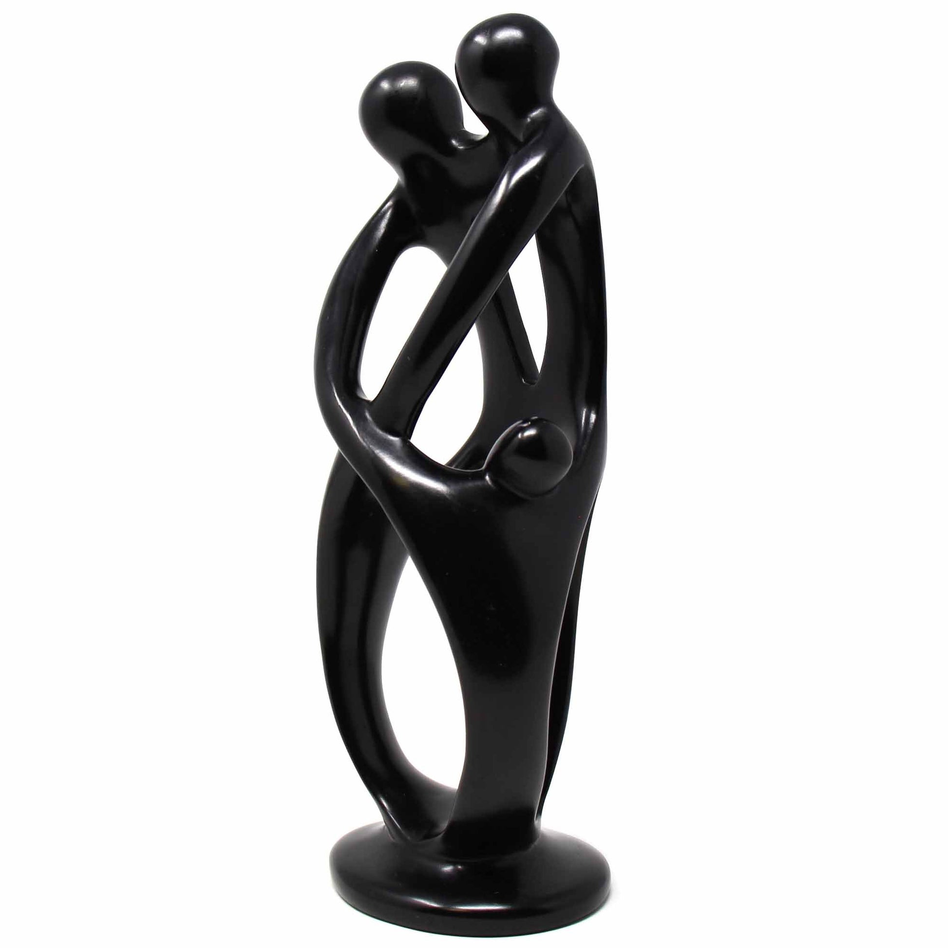 Handcarved from soapstone, these sculptures are each unique in color and size and are approximately 10 inches tall. Sold individually. As a natural material, the color of soapstone varies from creamy white, to rosy pink, to earthy gold.