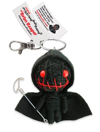 Contains: one 2" - 3" string doll character with a double-sided fabric tag and lobster claw keyring. Fair Trade and Handmade in Thailand, each string doll has his or her own special power that is always positive and helpful. They are fun for the whole family and make a perfect gift.