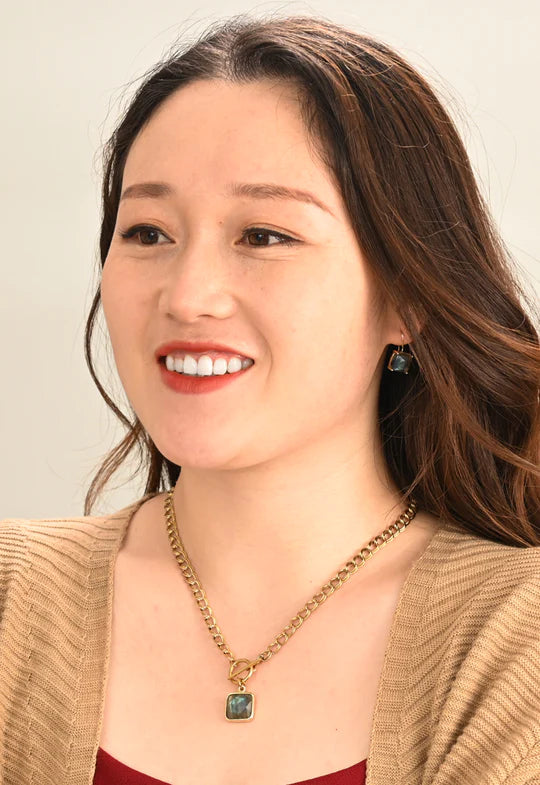 Our Twilight Earrings are our new favorite wear-anywhere accessory. Featuring a gorgeous square cut light-reflecting labradorite stone set in a classic prong setting on a French hoop, you’ll reach for this timeless pair again and again! The labradorite stone shimmers with gorgeous midnight shades of blue, green, and purple! Add this eye-catching pair to your collection today to share about your life-transforming partnership with Starfish Project as the compliments roll in!